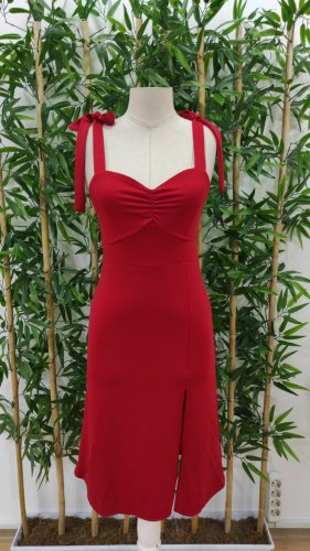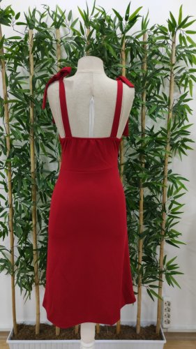 • Kadın göğüs büzgü detay askıları bağlamalı yırtmaçlı krep elbise