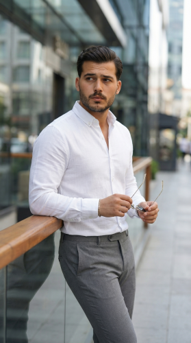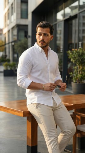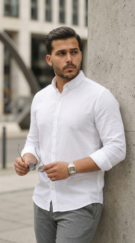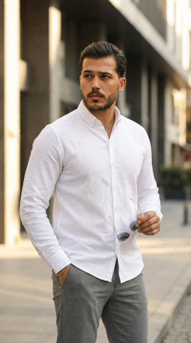 • Erkek Uzun Kollu Rahat Keten Gömlek
