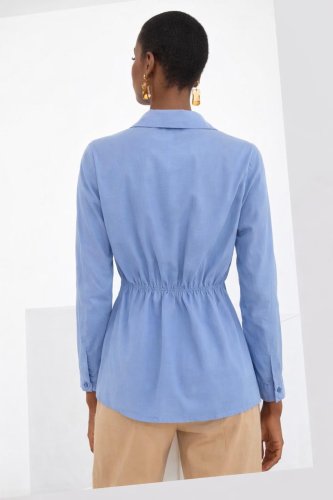 • Kadın düğme ve plise detay arkası lastikli ceket