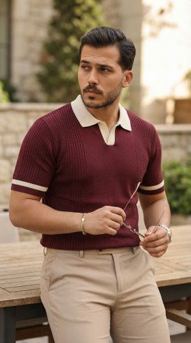 • Erkek Renkli Yakalı File Desenli Kısa Kollu Tişört