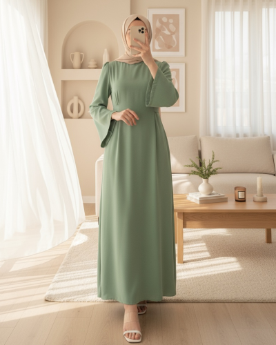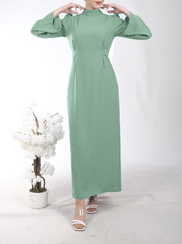 • Hakim Yaka Belden Bağlamalı Elbise Su Yeşili