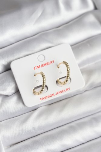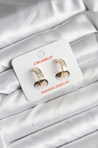 14K Gold Renk Kaplama Zirkon Taşlı Halka Model CM Kadın Küpe