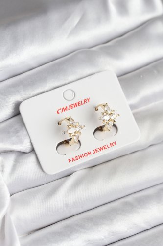 14K Gold Renk Kaplama Zirkon Taşlı CM Kadın Küpe